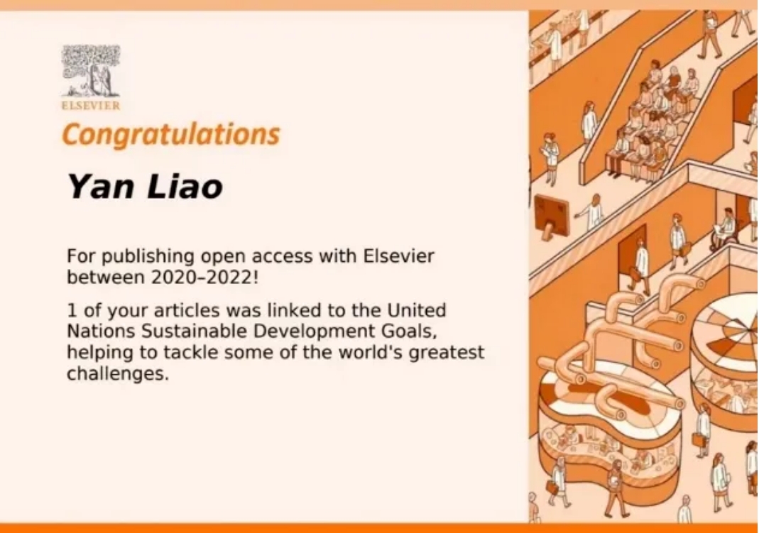 國際頂尖出版社Elsevier祝賀廖延博士研究成果在聯(lián)合國可...