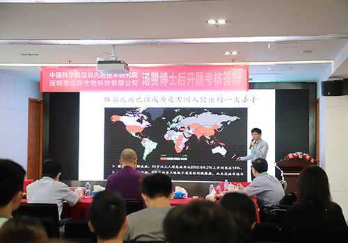 6月18日,中國科學(xué)院深圳先進(jìn)技術(shù)研究院與深圳市北科生物科技有限公司聯(lián)合培養(yǎng)的博士后湯贊博士開題答辯會在北科生物舉行。西安交通大學(xué)生命科學(xué)學(xué)院教授丁健、廣東食品藥品職業(yè)學(xué)院副教授劉戈飛、中國科學(xué)院深圳