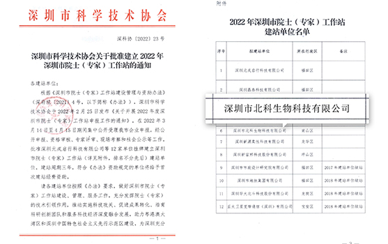 2022年6月27日,深圳市科學(xué)技術(shù)協(xié)會(huì)發(fā)布通知,按照《深圳市院士(專家)工作站建設(shè)管理與資助辦法》(深府規(guī)〔2021〕4號(hào))有關(guān)要求,經(jīng)過公開申報(bào)、資格審核和專家評(píng)審、現(xiàn)場(chǎng)考察和社會(huì)公示等工作,同意