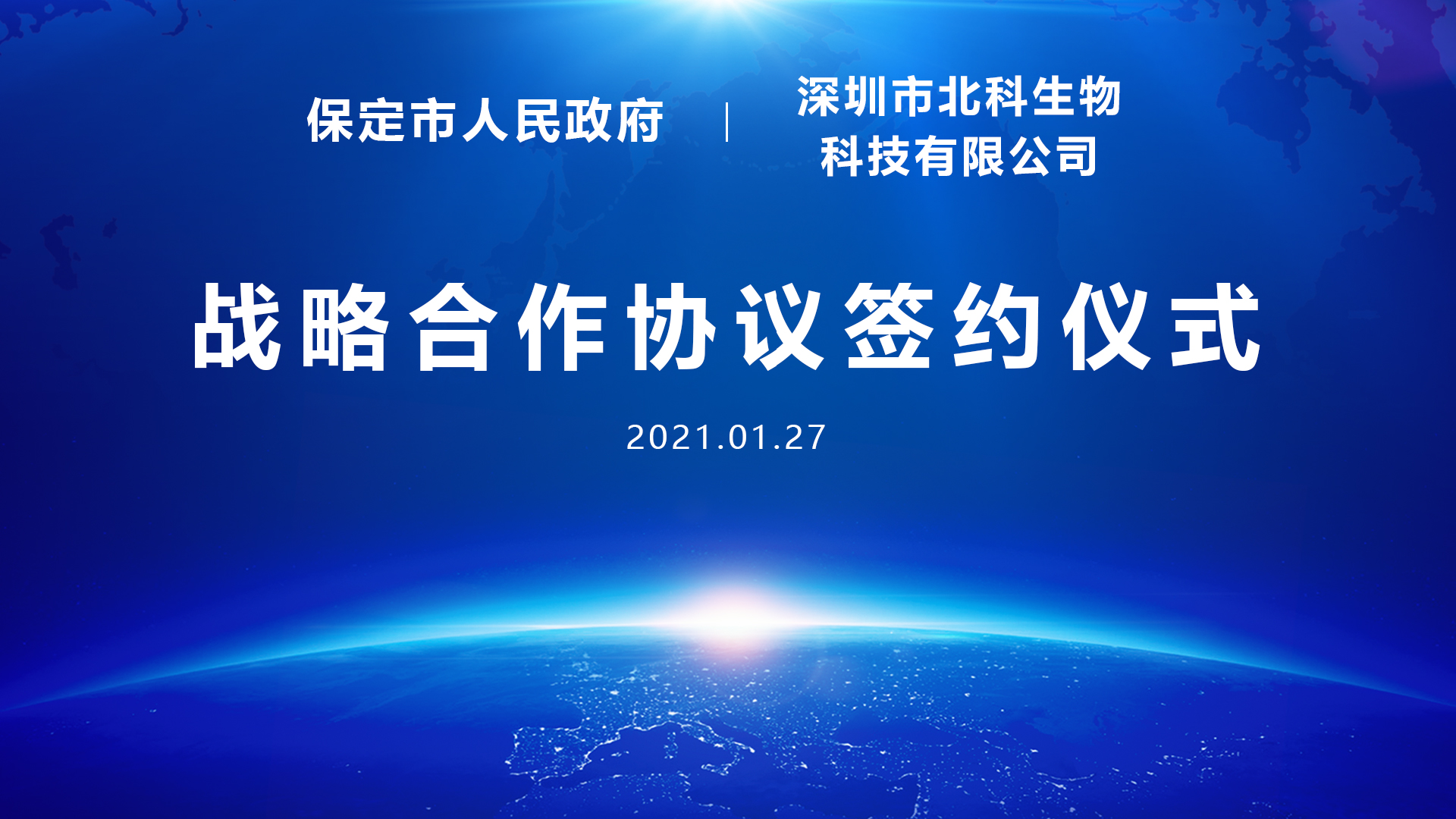 1月27日,保定市人民政府召開重點(diǎn)合作項(xiàng)目云簽約儀式,與深圳市北科生物科技有限公司(以下簡(jiǎn)稱“北科生物”)成功簽署戰(zhàn)略合作協(xié)議。雙方將積極發(fā)揮自身資源和優(yōu)勢(shì),共同為保定打造生命健康產(chǎn)業(yè)及國(guó)家醫(yī)療中心,推動(dòng)保定產(chǎn)業(yè)升級(jí)和打造特色醫(yī)療品牌貢獻(xiàn)力量。由于疫情原因,簽約儀式在線上舉行,河北省保定市市委書記黨曉龍致辭,市長(zhǎng)郭建英主持, 市委常委、常務(wù)副市長(zhǎng)李國(guó)勇代表市政府與北科生物董事長(zhǎng)胡雋源博士完成簽約。
