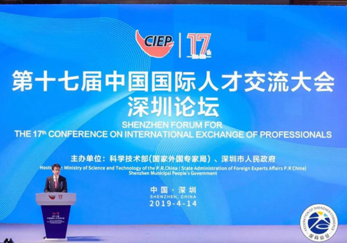 2019年04月14日,由科學(xué)技術(shù)部(國(guó)家外國(guó)專(zhuān)家局)、深圳市人民政府主辦的第十七屆中國(guó)國(guó)際人才交流大會(huì)·深圳論壇在深圳會(huì)展中心舉行,科技部副部長(zhǎng)、國(guó)家外國(guó)專(zhuān)家局局長(zhǎng)張建國(guó)、深圳市委常委、市政府副市長(zhǎng)、黨組書(shū)記劉慶生,以及來(lái)自海內(nèi)外的700多名專(zhuān)家學(xué)者、企業(yè)家及商界精英等匯聚一堂,圍繞“科技創(chuàng)新”與“人才成長(zhǎng)”等話題,分享了國(guó)際新形勢(shì)下,科技與人才的可繼續(xù)發(fā)展和創(chuàng)新之道。[1]
