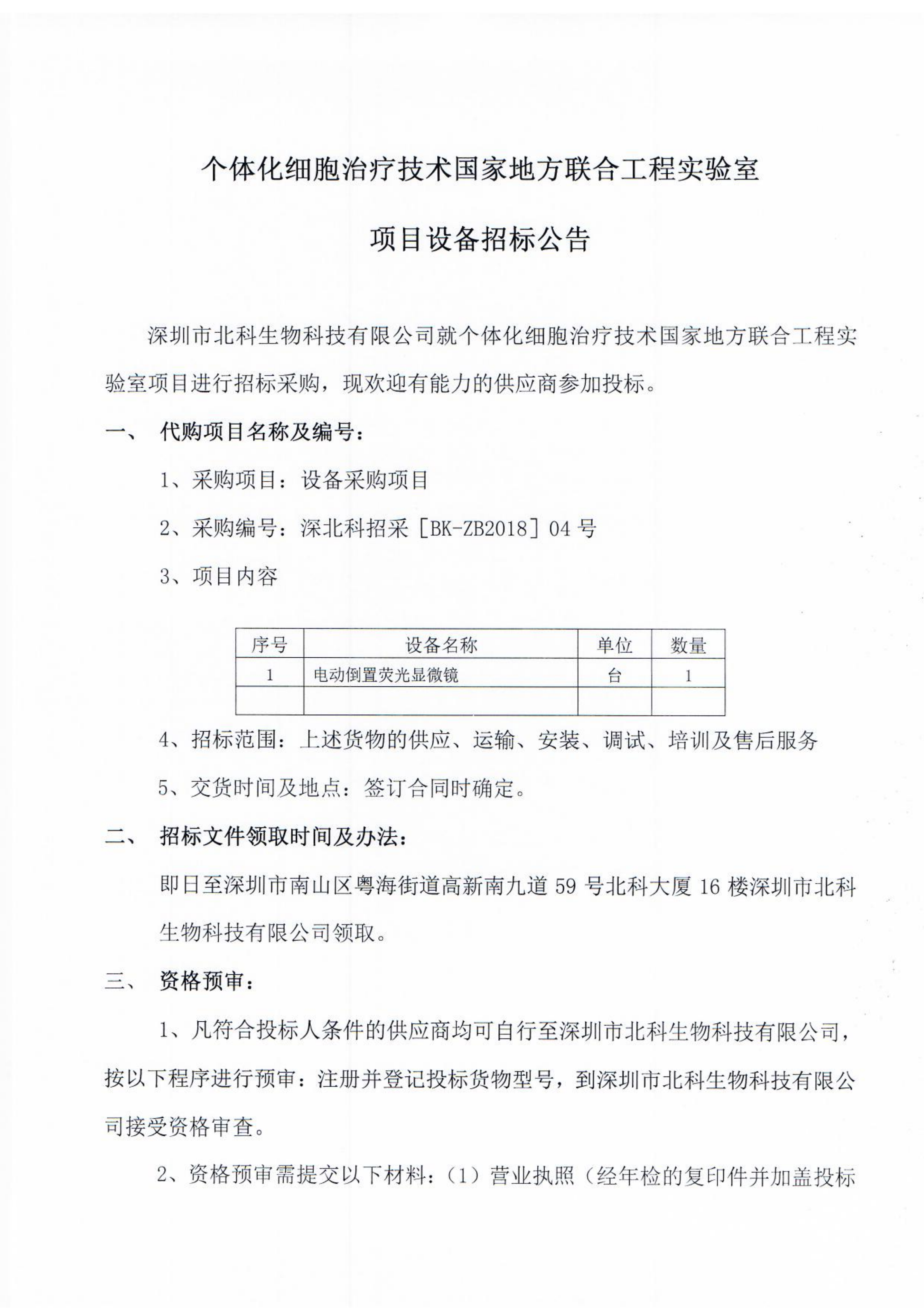 個(gè)體化細(xì)胞治療技術(shù)國家地方聯(lián)合工程實(shí)驗(yàn)室項(xiàng)目設(shè)備招標(biāo)公告