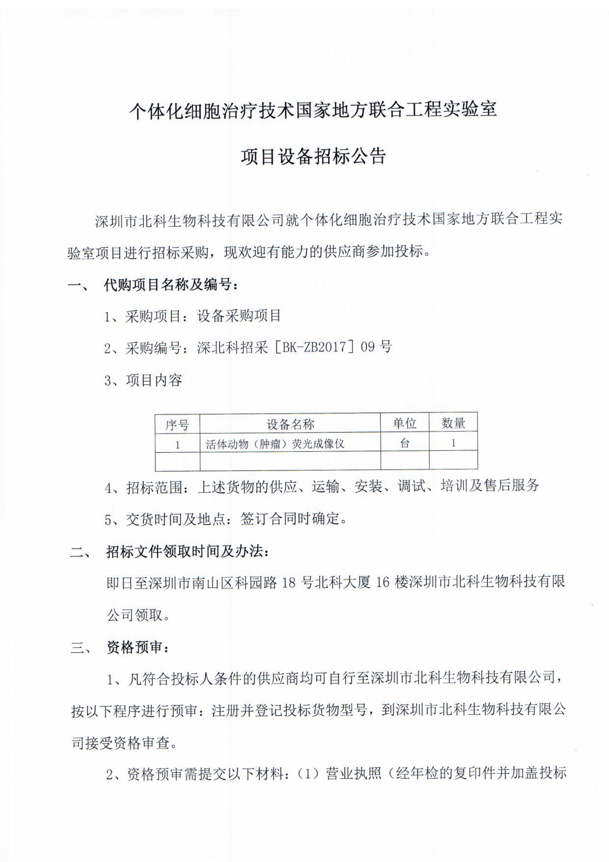 個體化細胞治療技術(shù)國家地方聯(lián)合工程實驗室項目設(shè)備招標公告