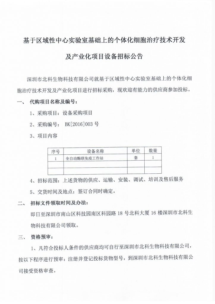 基于區(qū)域性中心實(shí)驗(yàn)室基礎(chǔ)上的個(gè)體化細(xì)胞治療技術(shù)開發(fā)及產(chǎn)業(yè)化項(xiàng)目設(shè)備招標(biāo)公告