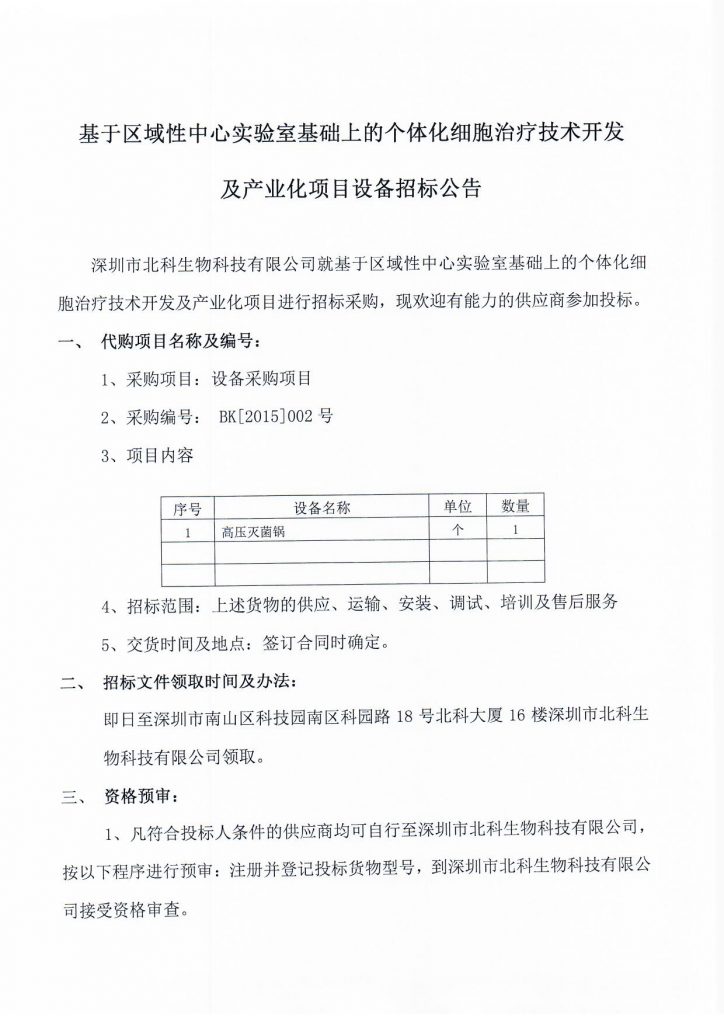 基于區(qū)域性中心實(shí)驗(yàn)室基礎(chǔ)上的個(gè)體化細(xì)胞治療技術(shù)開發(fā)及產(chǎn)業(yè)化項(xiàng)目設(shè)備招標(biāo)公告
